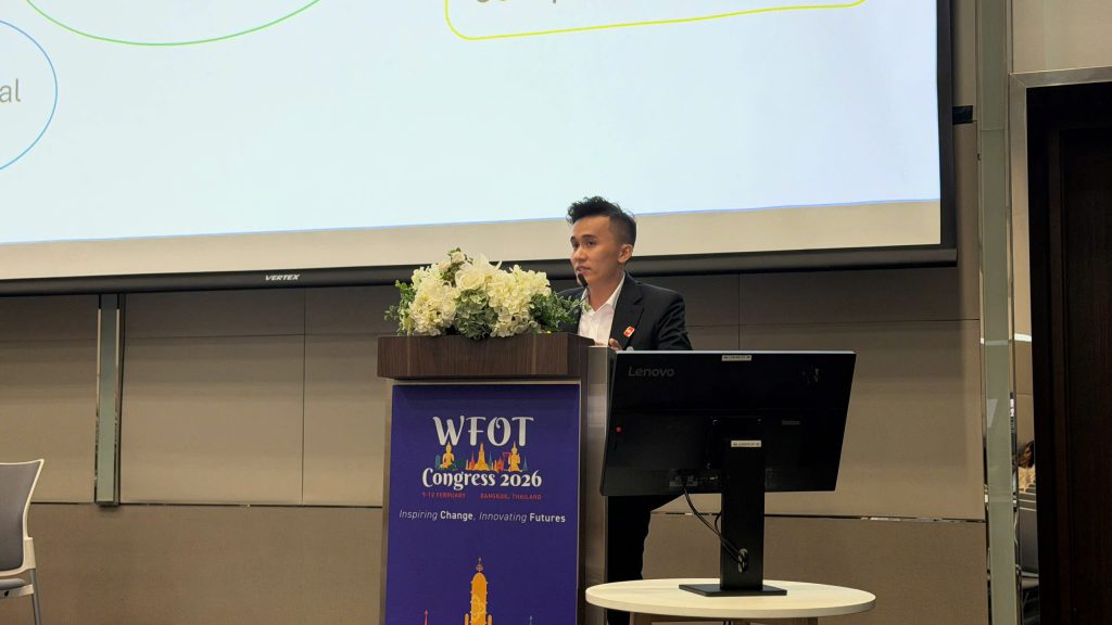 Tại WFOT Congress 2026 – Đại hội Hoạt động trị liệu Thế giới, Th.S Phạm Ngọc Đạt – Giảng viên Hoạt động trị liệu, Bộ môn Phục hồi chức năng, Trường Điều dưỡng – Kỹ thuật Y học, Đại học Y Dược TP. Hồ Chí Minh, đã trình bày báo cáo với chủ đề: