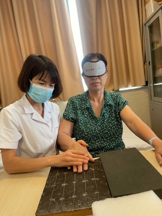Người bệnh tập lấy lại cảm giác với dụng cụ chuyên biệt